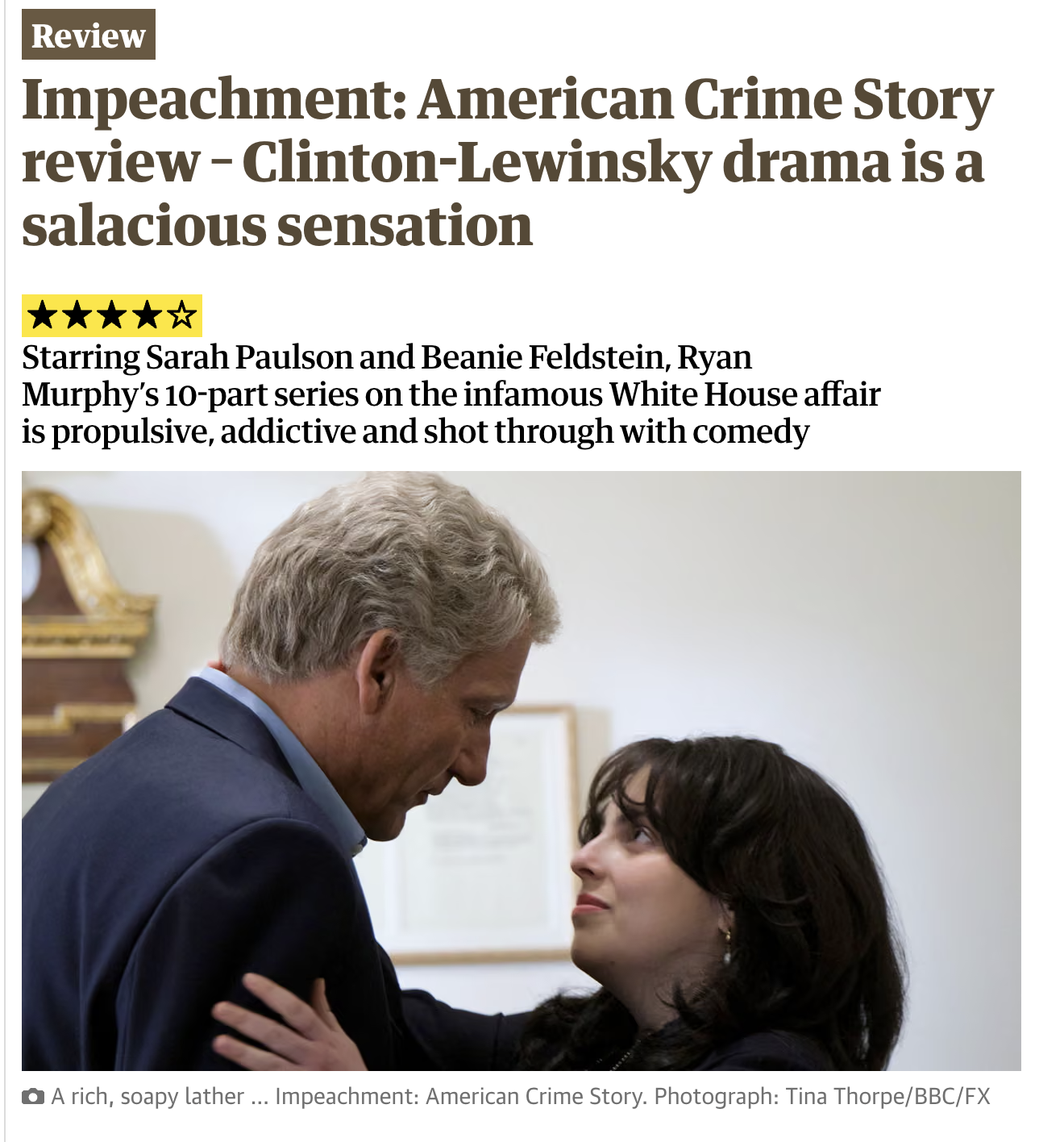 Mind you, AGAIN, this was before she had her truly epic comeback … and even YEARS before Ryan Murphy developed the American Crime series based on the decade defining Presidential affair from the ‘90s.