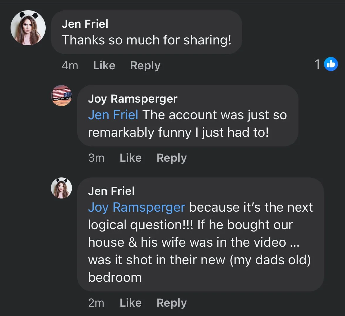 I had been visiting on or around the time it was on the market, and I SPECIFICALLY remember the realtor laughing going, well, we know what business she’s in.