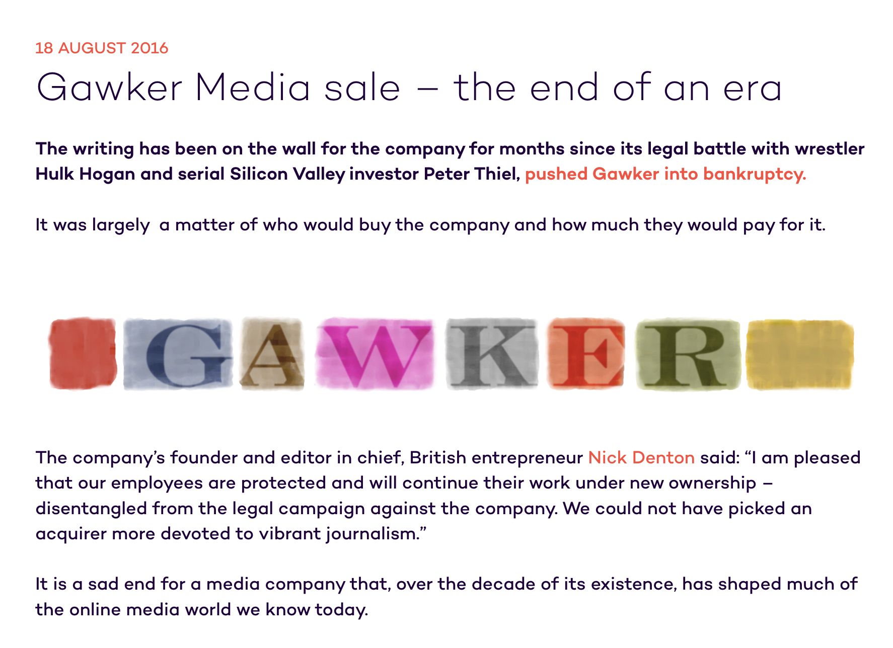So then … later that year, I’m at my folks’ place having dinner … and I very proudly told them more about the project I was working on (as I couldn’t give any more details as it was happening) …. and when I mentioned the Gawker assets and the bid (which we lost on obvi) … I mentioned the Hulk Hogan lawsuit and being slutshamed by one of their brands.